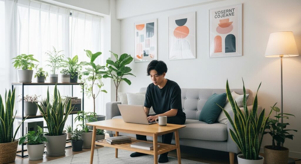さらに、賢い収納術や視覚効果を活用してスペースを最大限に活かし、グリーンや雑貨で温かみを加えることで、生活感とおしゃれさのバランスが取れた空間が生まれます。これらの秘訣を参考に、あなただけの居心地の良い部屋を作り上げ、充実した一人暮らしをスタートさせてください!