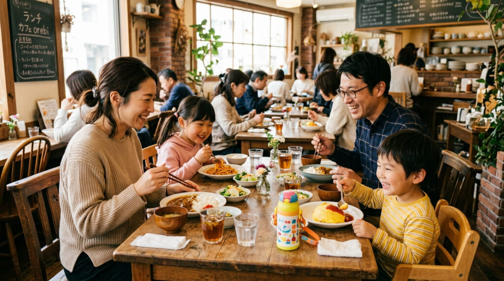小さなお子様と一緒なら、座席の間隔が広くベビーカーのまま入店できるファミリーレストランや、うどん・オムライスなどのキッズメニューが充実しているお店が助かりますよね。